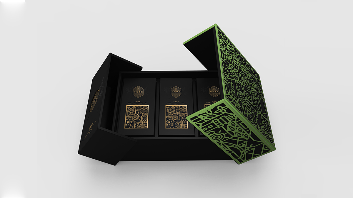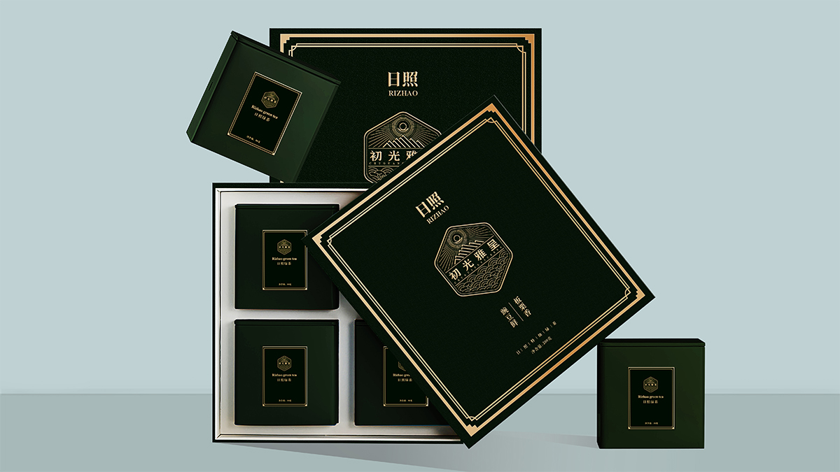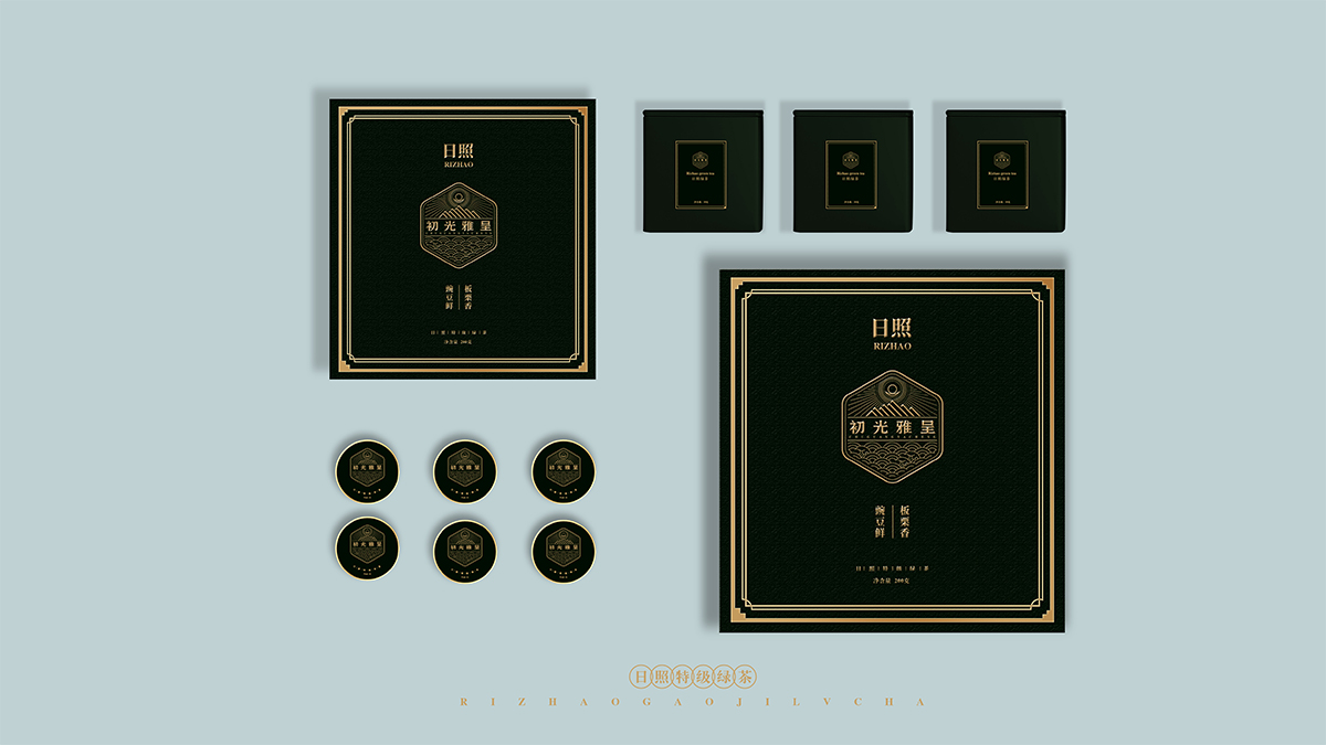 基于品牌風(fēng)格定位,我們以體現(xiàn)產(chǎn)品的高端、高品質(zhì)、文化屬性以及歷史厚重感為設(shè)計的主要方向。我們對于包裝應(yīng)用:色彩是保持品牌可視化的強大工具,在包裝用色上,我們主要以太陽文化、茶葉為原型,提取其中顏色,將黑、金、綠相結(jié)合,深沉、古樸、高雅,賦予品牌高端感,具有強烈的視覺沖擊力。