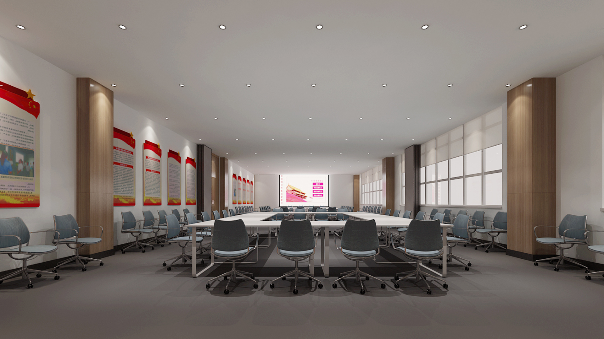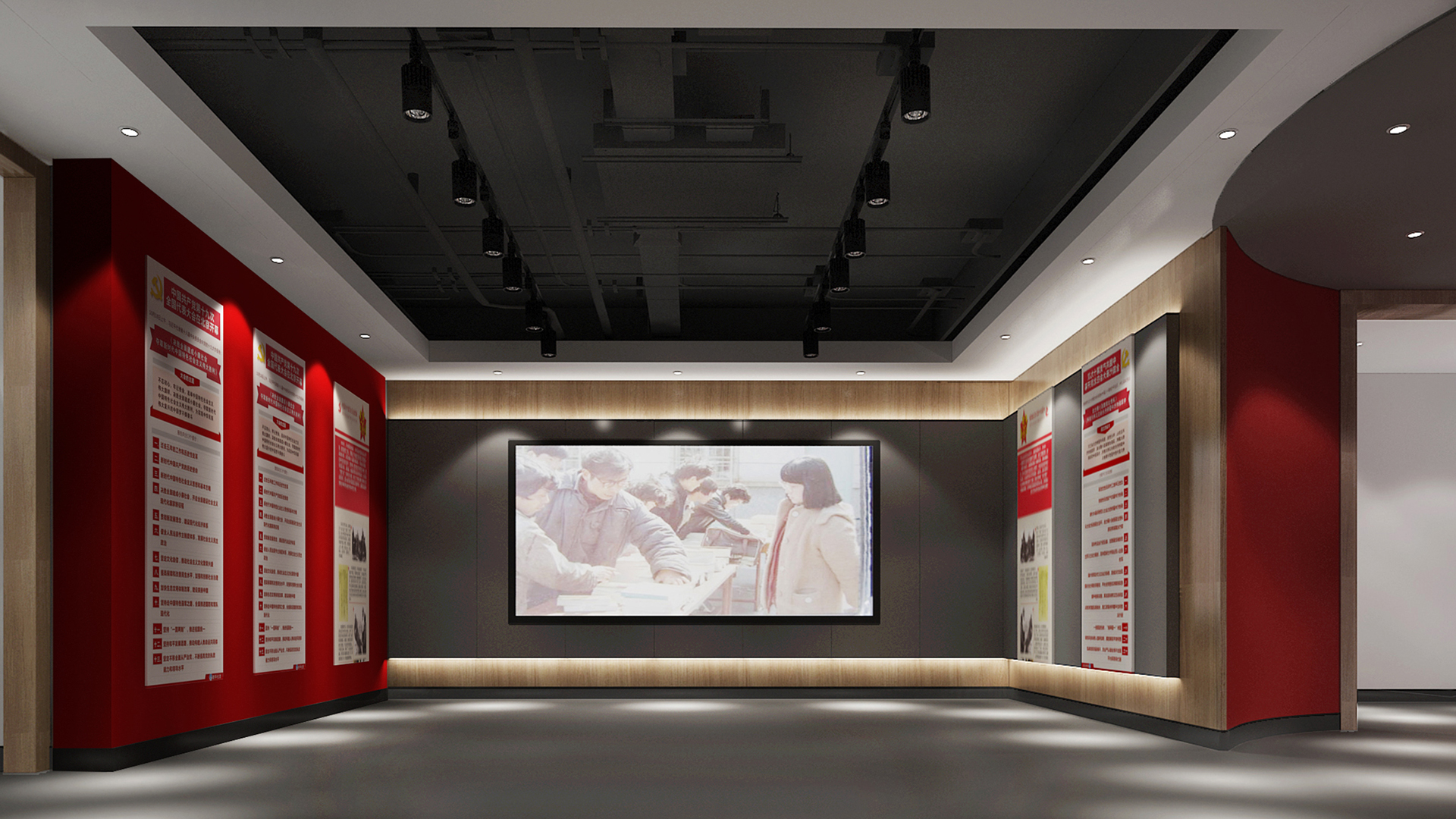 黨建活動中心需要準(zhǔn)確定義黨建文化主題、時(shí)代性的展示、深刻的黨史印象和空間的合理使用安排,弘揚(yáng)正能量的同時(shí),關(guān)心參觀用戶對黨史展廳的體驗(yàn)度。